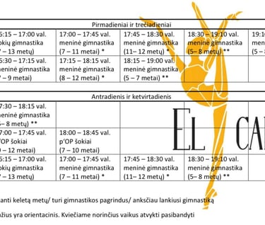 Treniruočių tvarkaraščiai
